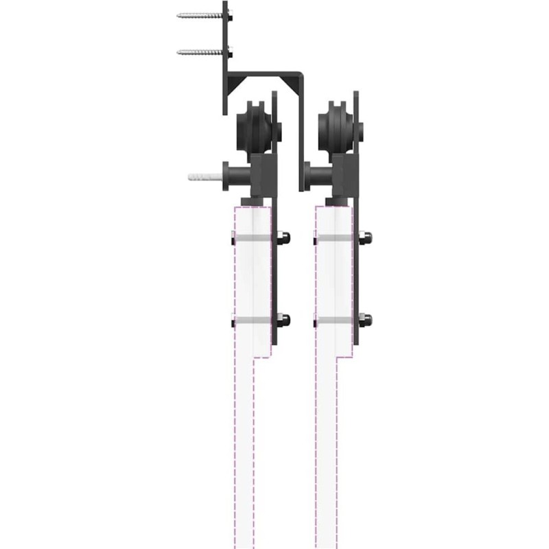 - Zawiera: 4 x tor przesuwający, 4 x ograniczniki drzwi, 4 x rolki, 2 x prowadnice podłogowe, 10 x zacisk mocujący, 5 x uchwyt do drzwi przesuwnych