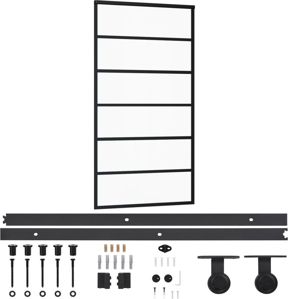 vidaXL Drzwi przesuwne z osprzętem, szkło ESG i aluminium, 102x205 cm