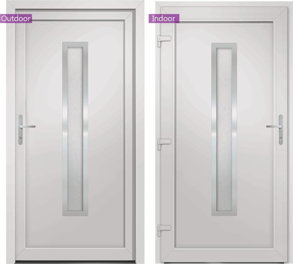 - Trwały materiał: drzwi wejściowe zawierają ramę z PVC. Jest ona odporna na uszkodzenia spowodowane przez termity, czynniki korozyjne i wilgoć.