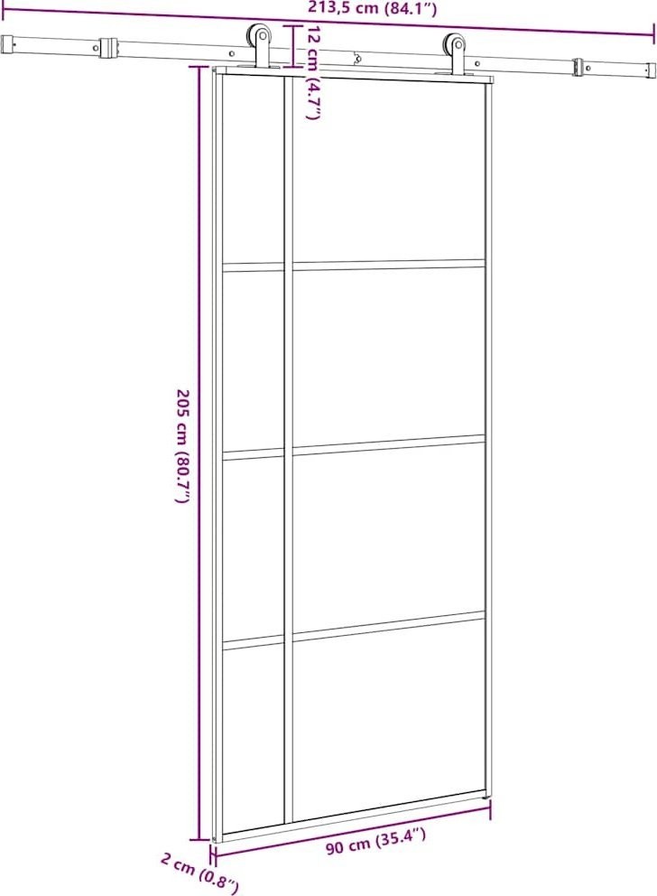 vidaXL vidaXL Drzwi przesuwne z osprzętem, 90x205 cm, szkło ESG i aluminium