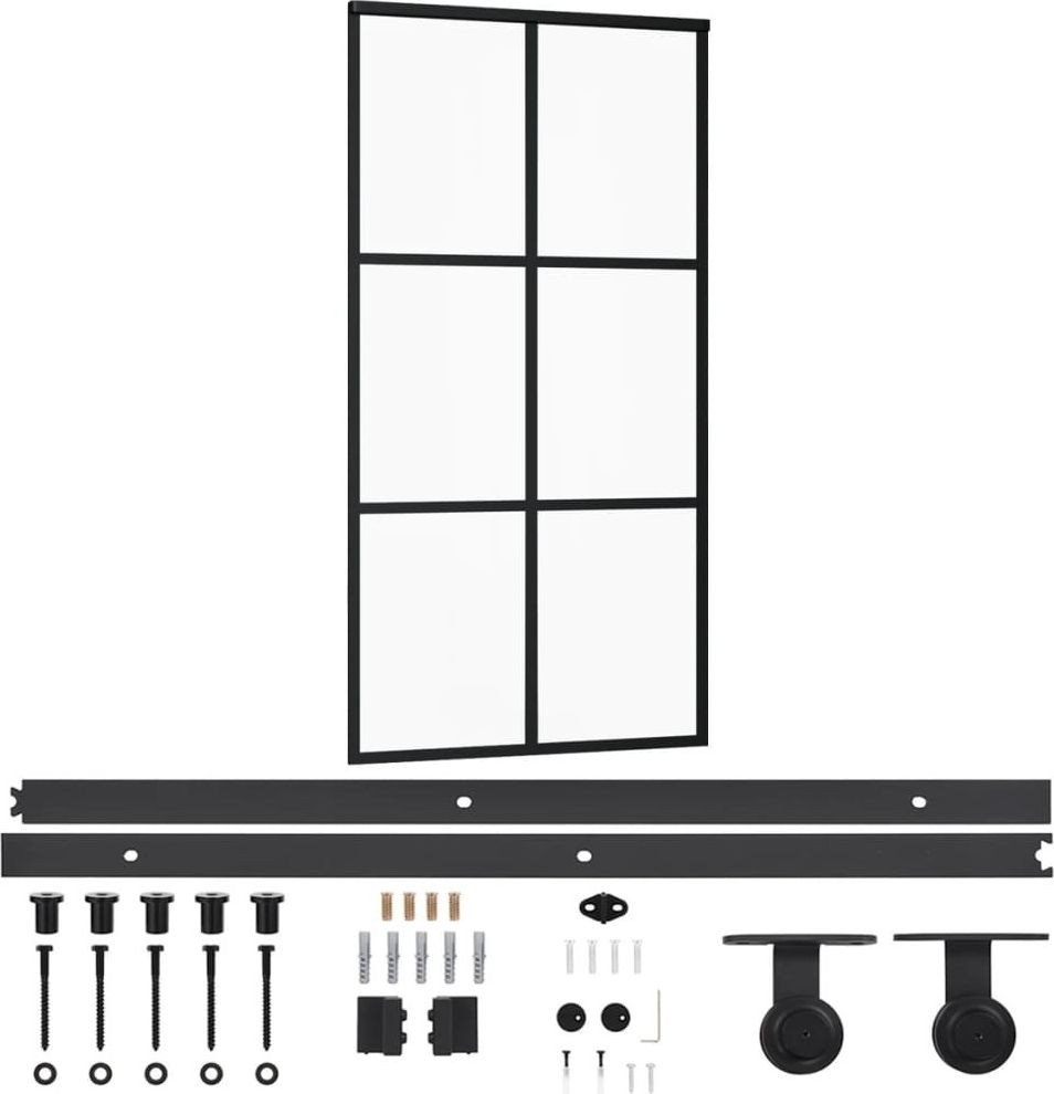 vidaXL Drzwi przesuwne z osprzętem, szkło ESG i aluminium, 102x205 cm