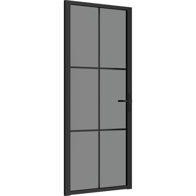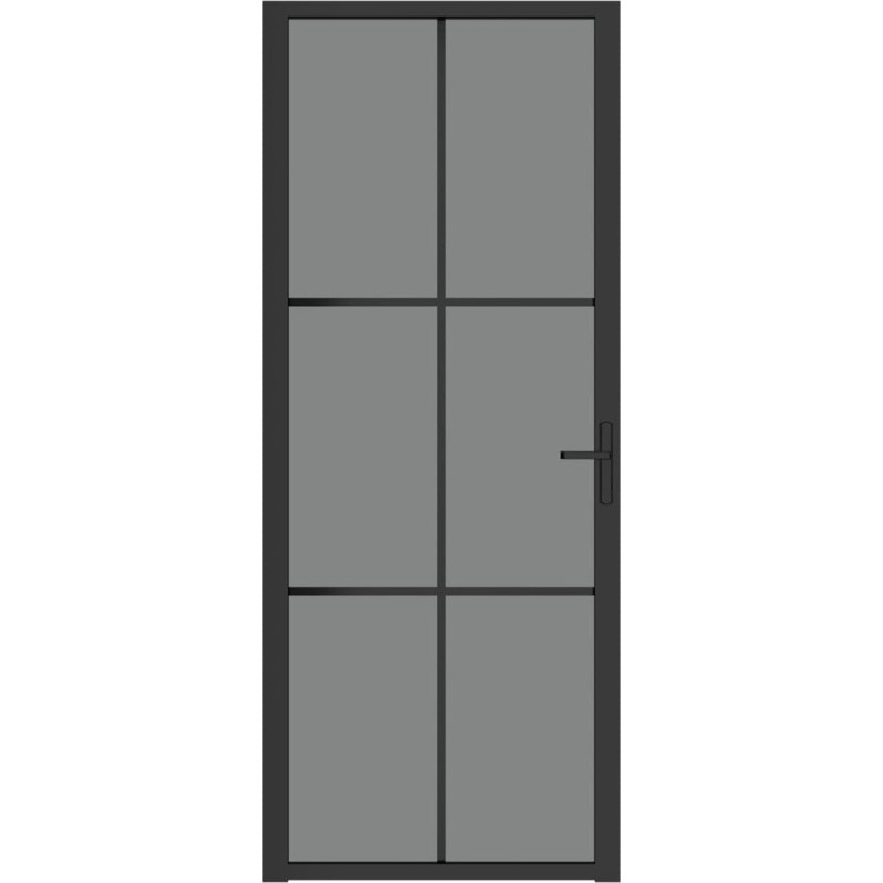 vidaXL Drzwi wewnętrzne, 83x201,5 cm, czarne, szkło ESG i aluminium