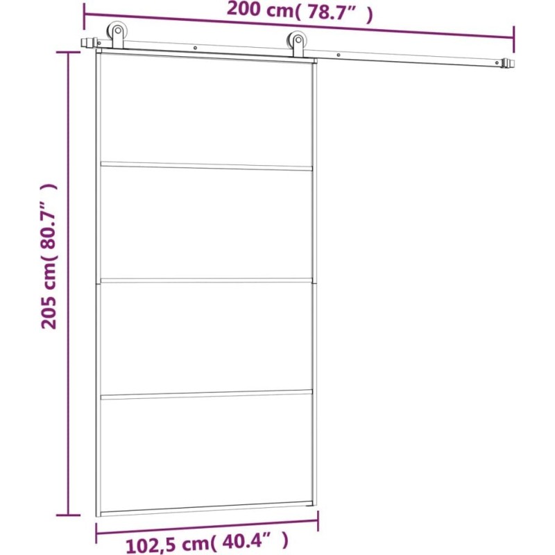 vidaXL vidaXL Drzwi przesuwne a akcesoriami, 102,5x205 cm, ESG i aluminium