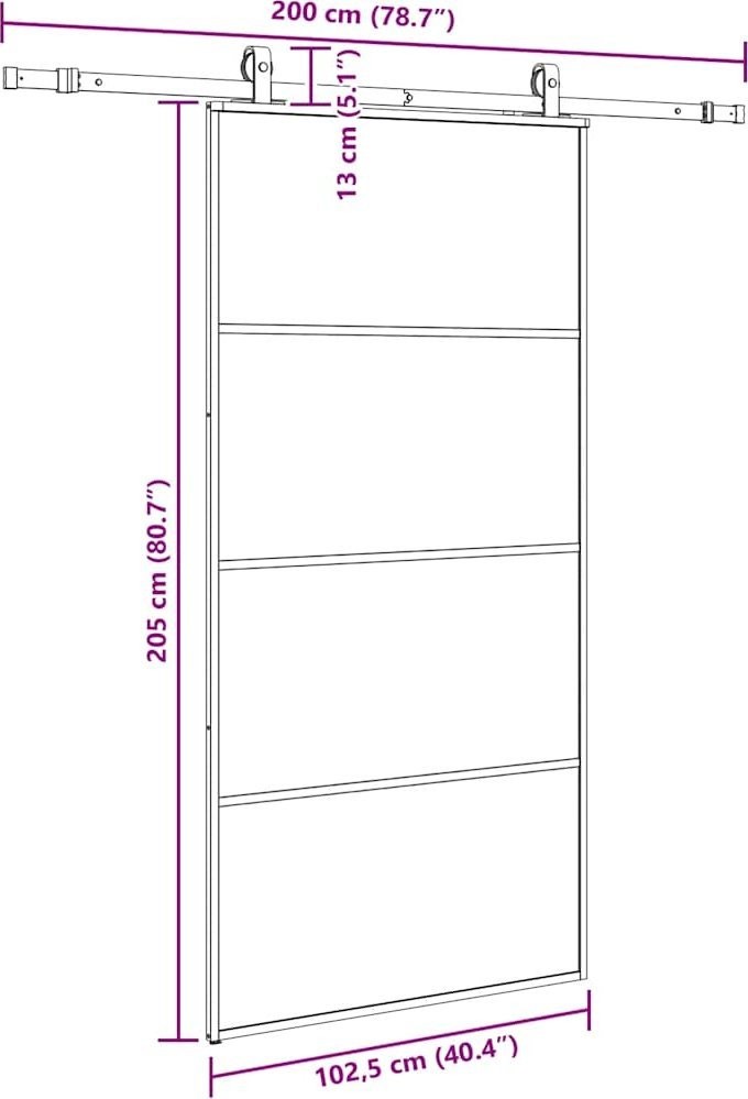 vidaXL Drzwi przesuwne z zestawem okuć czarne 102,5x205 cm ESG szkło
