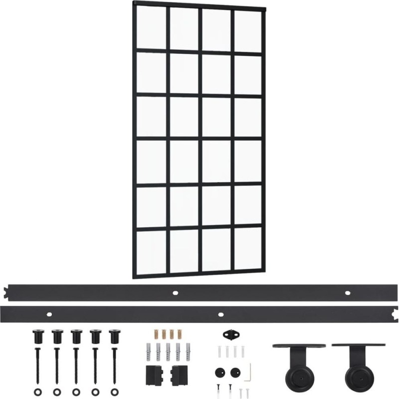 vidaXL Drzwi przesuwne z osprzętem, szkło ESG i aluminium, 102x205 cm