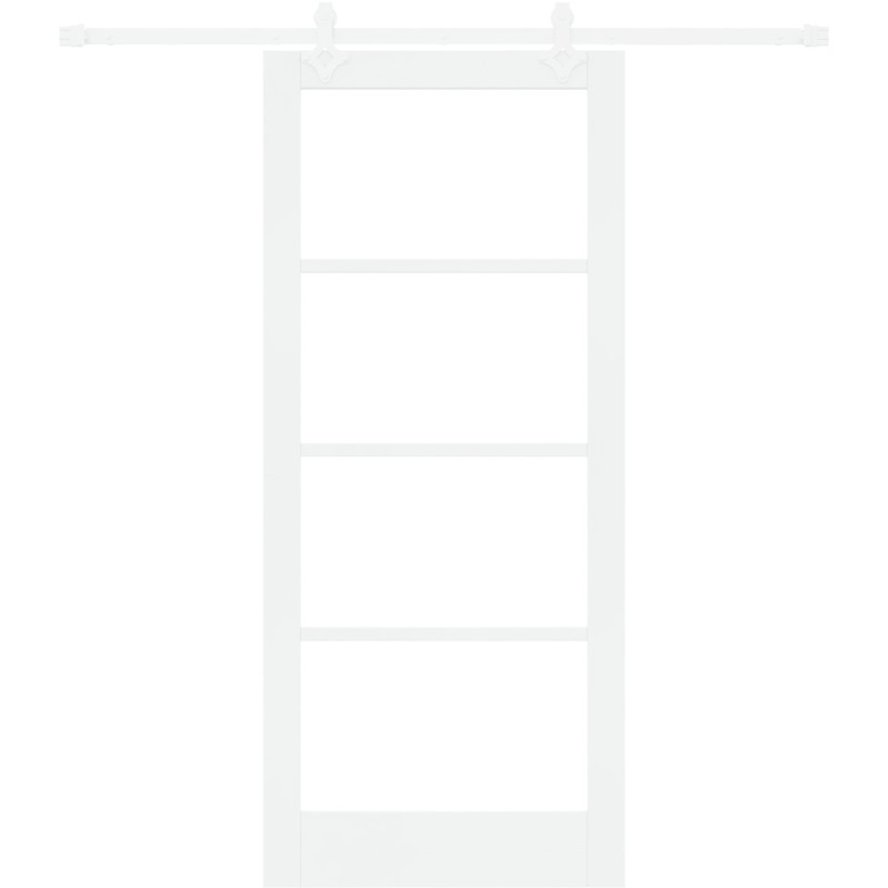 Białe drzwi przesuwne vidaXL z zestawem akcesoriów 86 x 198,5 cm z litego drewna sosnowego, Białe drzwi wewnętrzne vidaXL ze szk