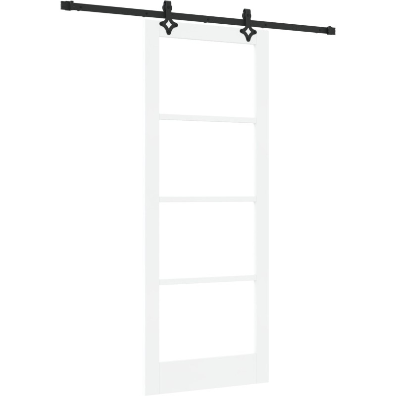 Drzwi przesuwne vidaXL z zestawem akcesoriów 'ORKDAL'Białe z litego drewna i szkła, Drzwi wewnętrzne vidaXL ze szkłem 'ORKDAL'Bi
