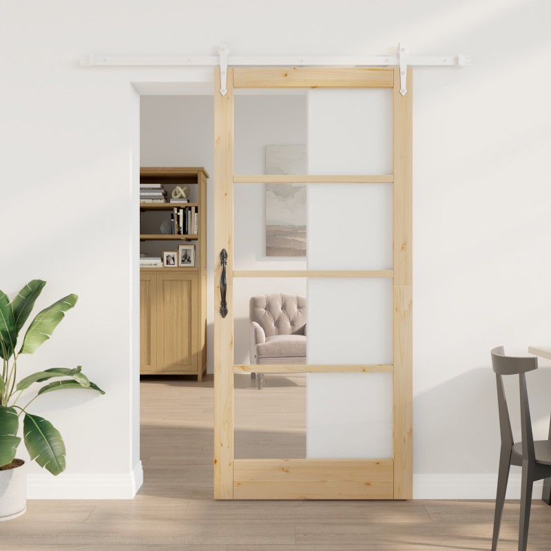 Zestaw drzwi przesuwnych vidaXL z akcesoriami 93x202 cm Lite drewno sosnowe, Drzwi wewnętrzne vidaXL z szkłem 'ORKDAL'93x202x4 c