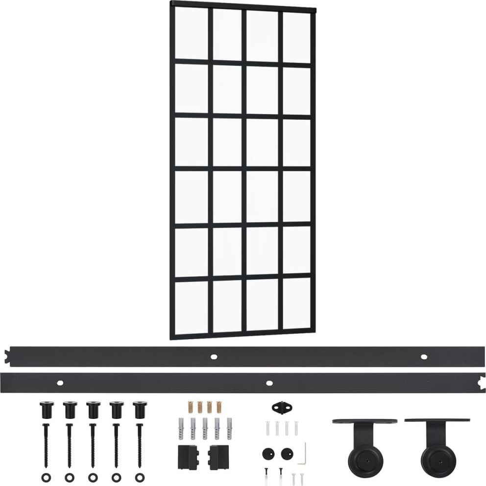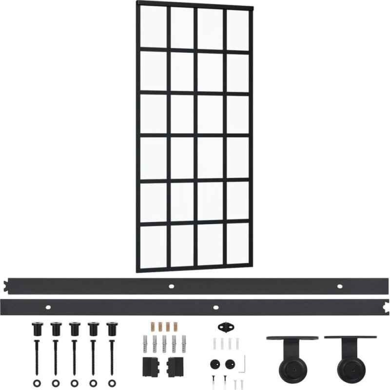 vidaXL Drzwi przesuwne z osprzętem, szkło ESG i aluminium, 90x205 cm
