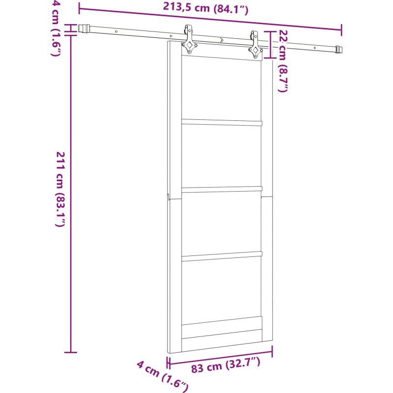 Zestaw drzwi przesuwnych z akcesoriami 83x211 cm z litego drewna sosnowego – Styl i funkcjonalność w Twoim wnętrzu