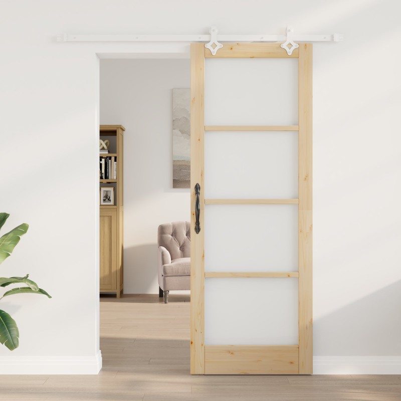 Zestaw drzwi przesuwanych vidaXL z akcesoriami 78x211 cm z litego drewna sosnowego, Drzwi wewnętrzne vidaXL z szybą 'ORKDAL'78x2