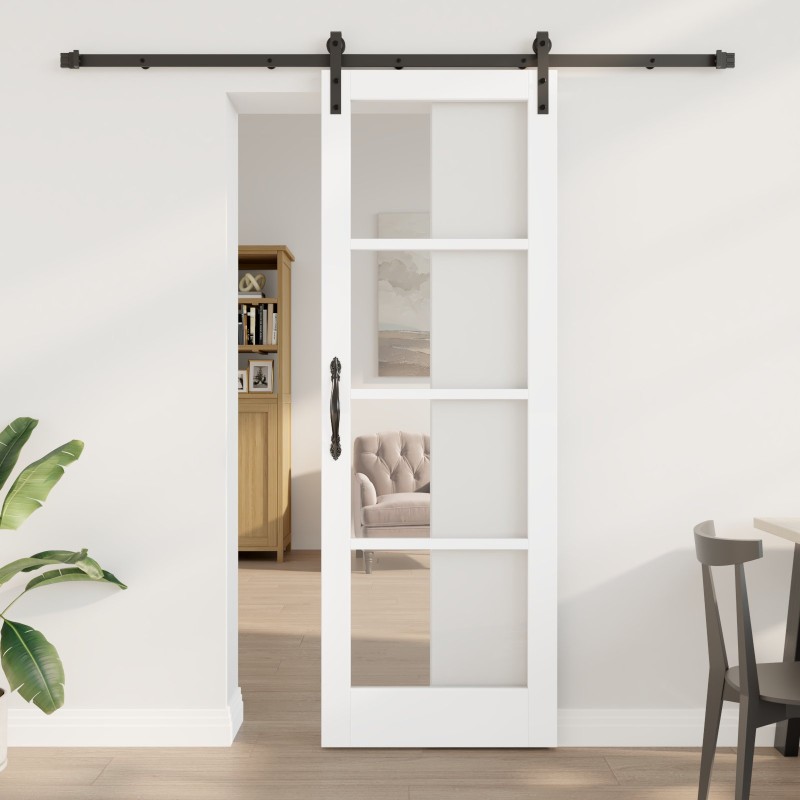 Drzwi przesuwne z zestawem akcesoriów 'ORKDAL'Białe 73.5x211 cm, Wewnętrzne drzwi ze szkłem 'ORKDAL'Białe 73.5x211x4 cm