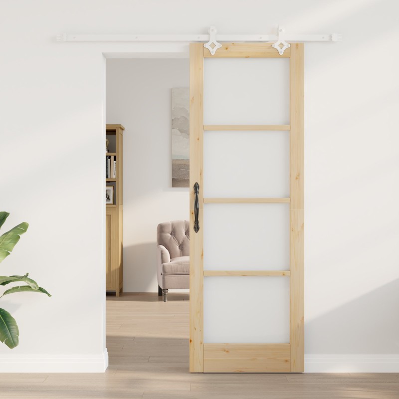 Zestaw drzwi przesuwnych vidaXL z akcesoriami 73,5x211 cm z litego drewna sosnowego, Drzwi wewnętrzne vidaXL z szybą 'ORKDAL'73,