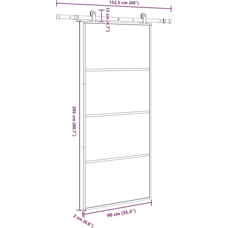 Drzwi przesuwne z osprzętem, 90x205 cm, szkło ESG i aluminium