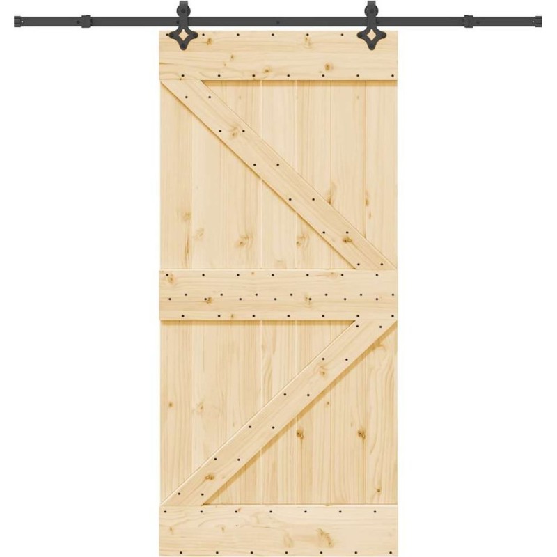 Drzwi przesuwne z osprzętem, 95x210 cm, lite drewno sosnowe
