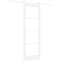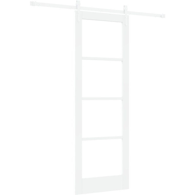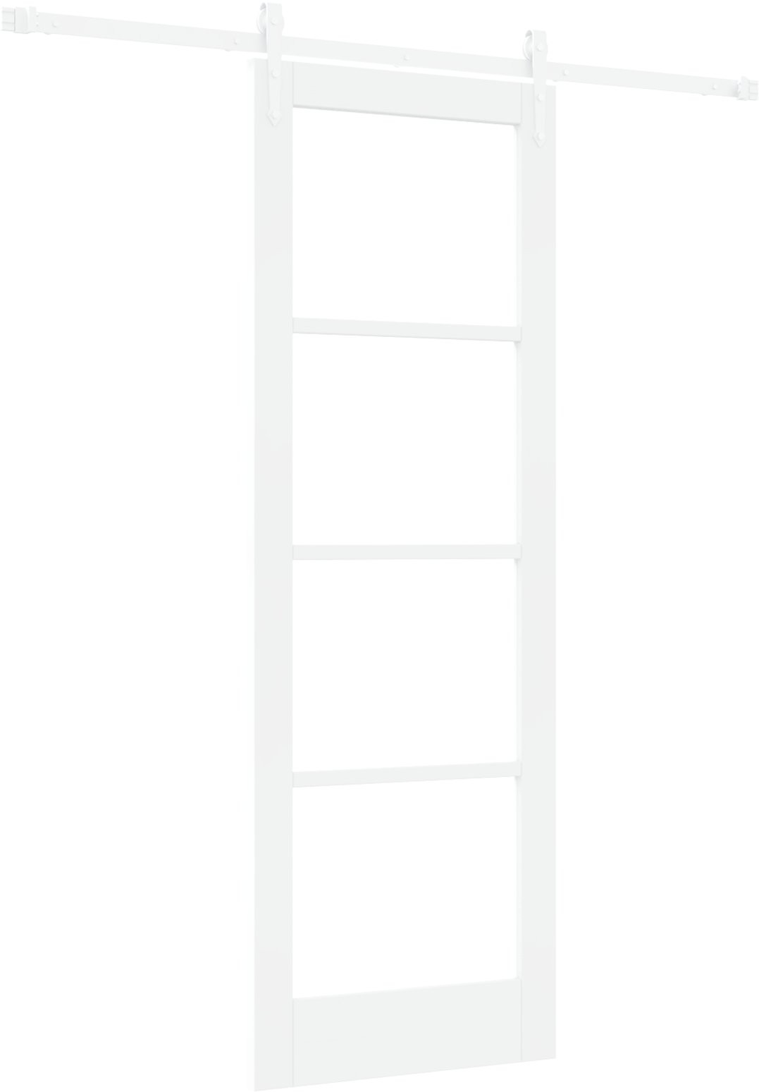 Białe drzwi przesuwne vidaXL z zestawem akcesoriów 73.5x211 cm z litego drewna sosnowego, Drzwi wewnętrzne vidaXL z szybą 'ORKDA
