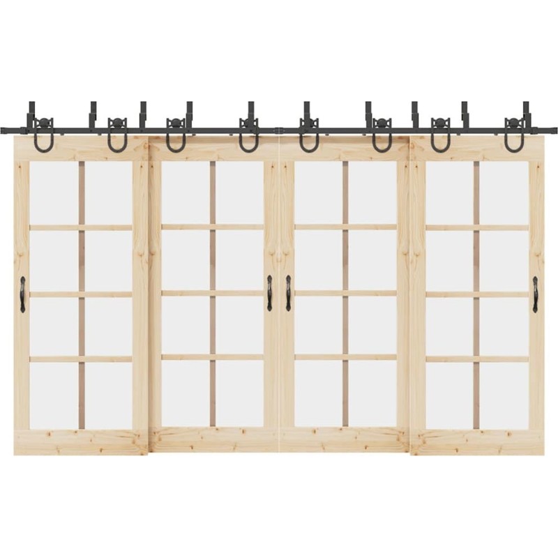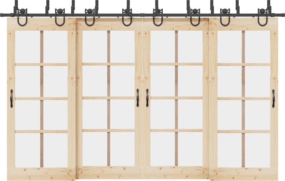 - Idealny do podwójnych drzwi do stodoły: gdy przestrzeń na ścianie jest ograniczona, zestaw uchwytów omijających drzwi do stodoły umożliwia niezależne przesuwanie dwóch drzwi na dwóch szynach bez konieczności zapewnienia dodatkowego miejsca.