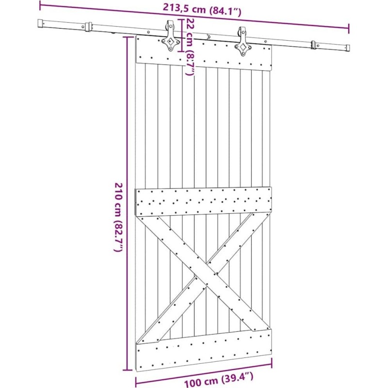 vidaXL Drzwi przesuwne z osprzętem, 100x210 cm, lite drewno sosnowe
