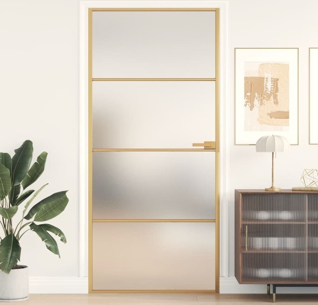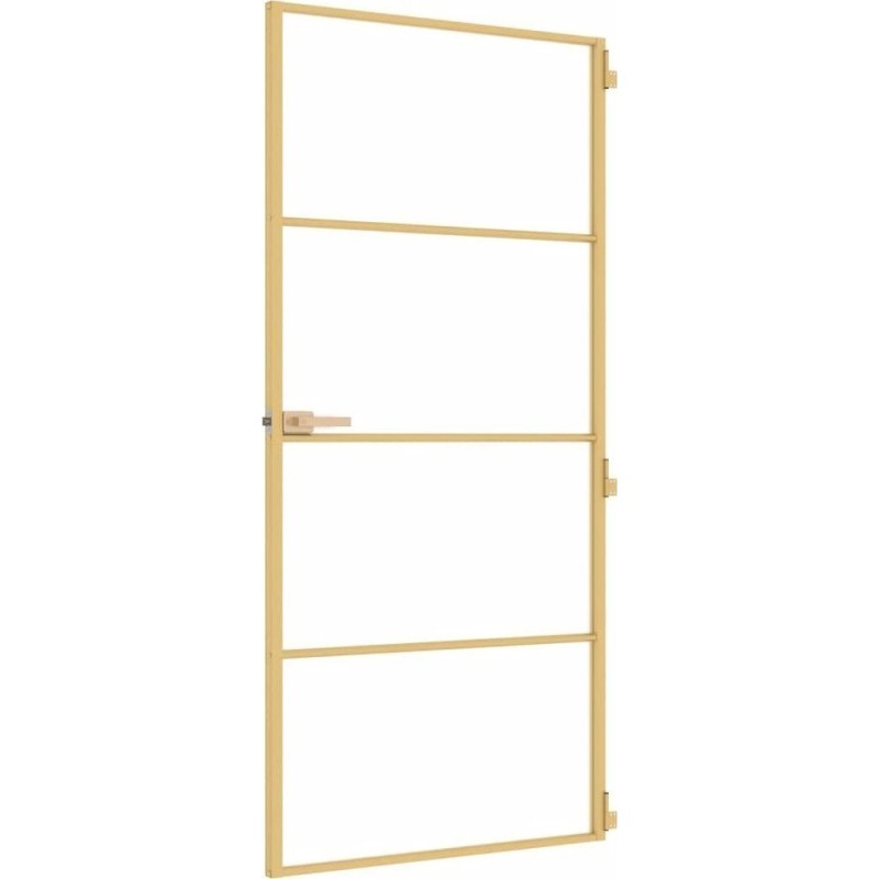 vidaXL Drzwi wewnętrzne, złote, 93x201,5 cm, szkło i aluminium