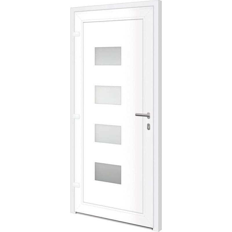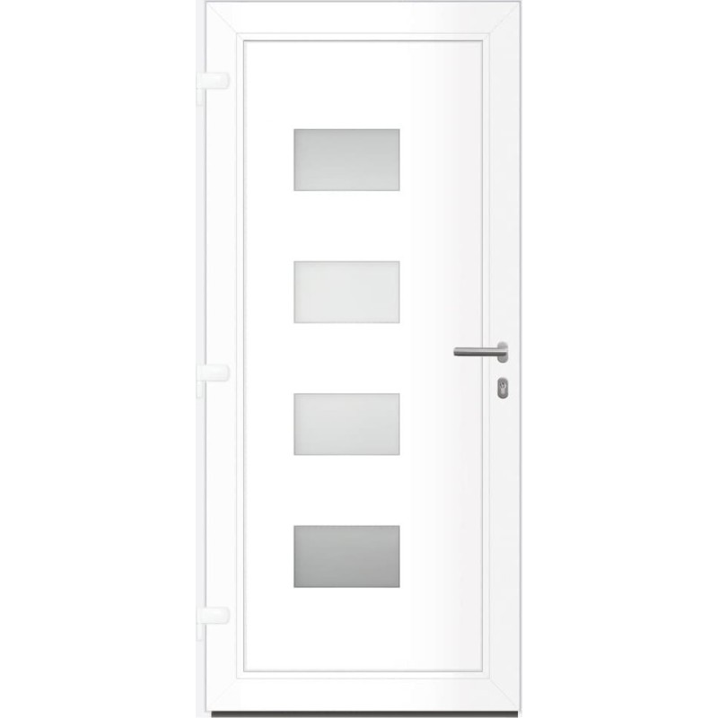 - Trwały materiał: drzwi wejściowe posiadają ramę z PVC z aluminiową osłoną. Wewnętrzna rama z PVC jest odporna na termity, czynniki korozyjne i wilgoć. Aluminium to trwały i mocny metal. Dzięki tworzącej się na jego powierzchni warstwie tlenku cechuje się odpornością na korozję.