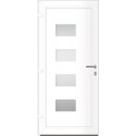 - Bezpieczna konstrukcja: drzwi wejściowe są wyposażone w solidną ramę, 5-kierunkowy zamek bezpieczeństwa w kształcie haka, izolowane przeszklenie oraz wzmocnienie z galwanizowanej stali, co zapewnia dodatkowe bezpieczeństwo.