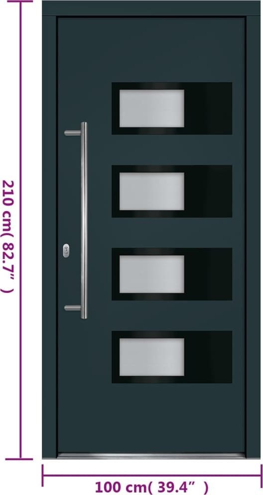 vidaXL Drzwi wejściowe, antracytowe, 100x210 cm, aluminium i PVC