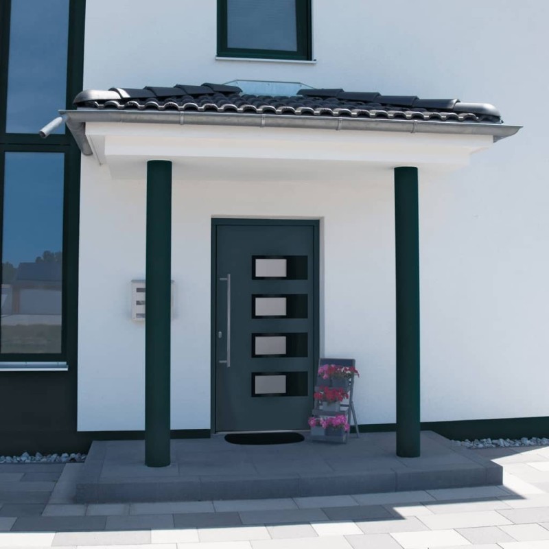 - Bezpieczna konstrukcja: drzwi wejściowe są wyposażone w solidną ramę, 5-kierunkowy zamek bezpieczeństwa w kształcie haka, izolowane przeszklenie oraz wzmocnienie z galwanizowanej stali, co zapewnia dodatkowe bezpieczeństwo.