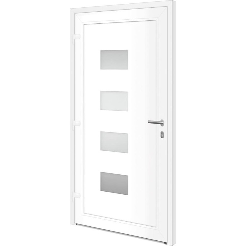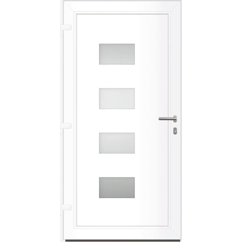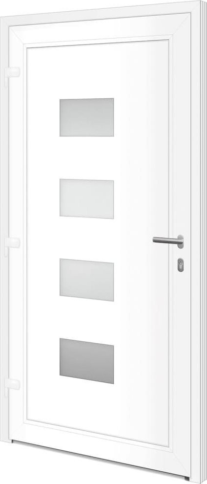- Trwały materiał: drzwi wejściowe posiadają ramę z PVC z aluminiową osłoną. Wewnętrzna rama z PVC jest odporna na termity, czynniki korozyjne i wilgoć. Aluminium to trwały i mocny metal. Dzięki tworzącej się na jego powierzchni warstwie tlenku cechuje się odpornością na korozję.