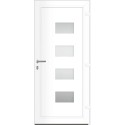 - Bezpieczna konstrukcja: drzwi wejściowe są wyposażone w solidną ramę, 5-kierunkowy zamek bezpieczeństwa w kształcie haka, izolowane przeszklenie oraz wzmocnienie z galwanizowanej stali, co zapewnia dodatkowe bezpieczeństwo.