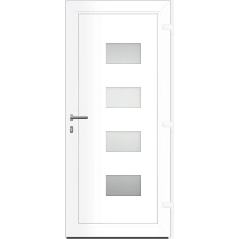 - Trwały materiał: drzwi wejściowe posiadają ramę z PVC z aluminiową osłoną. Wewnętrzna rama z PVC jest odporna na termity, czynniki korozyjne i wilgoć. Aluminium to trwały i mocny metal. Dzięki tworzącej się na jego powierzchni warstwie tlenku cechuje się odpornością na korozję.