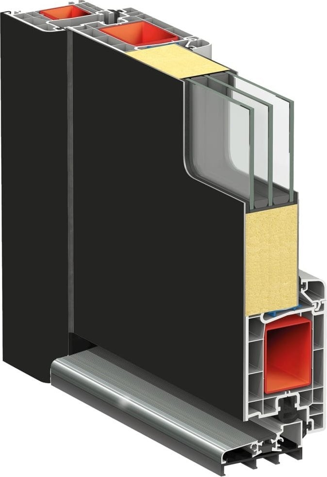 - Materiał: PVC, malowane proszkowo aluminium, warstwowe wypełnienie styropianowe