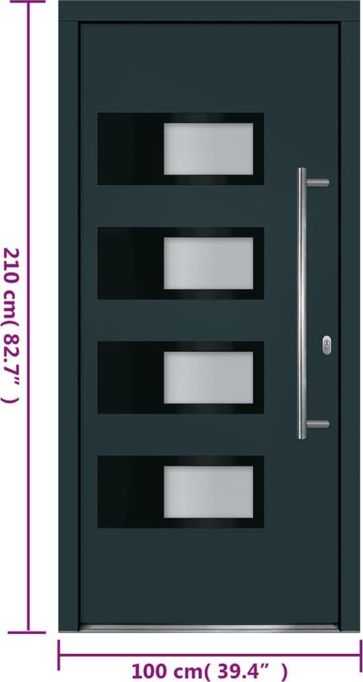 vidaXL Drzwi wejściowe, antracytowe, 100x210 cm, aluminium i PVC