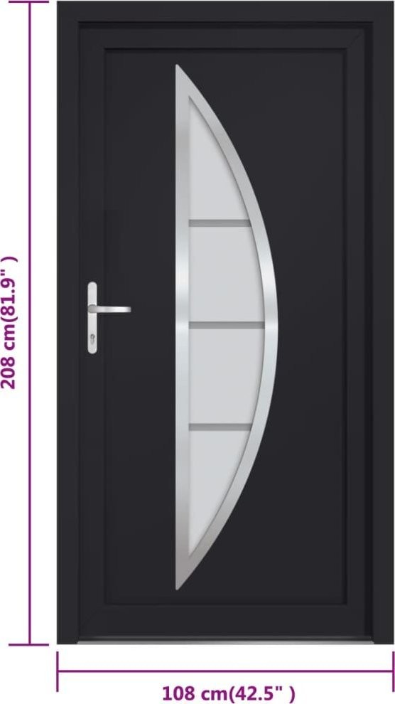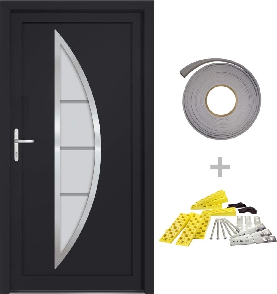 vidaXL Drzwi wejściowe, antracytowe, 108x208 cm, PVC
