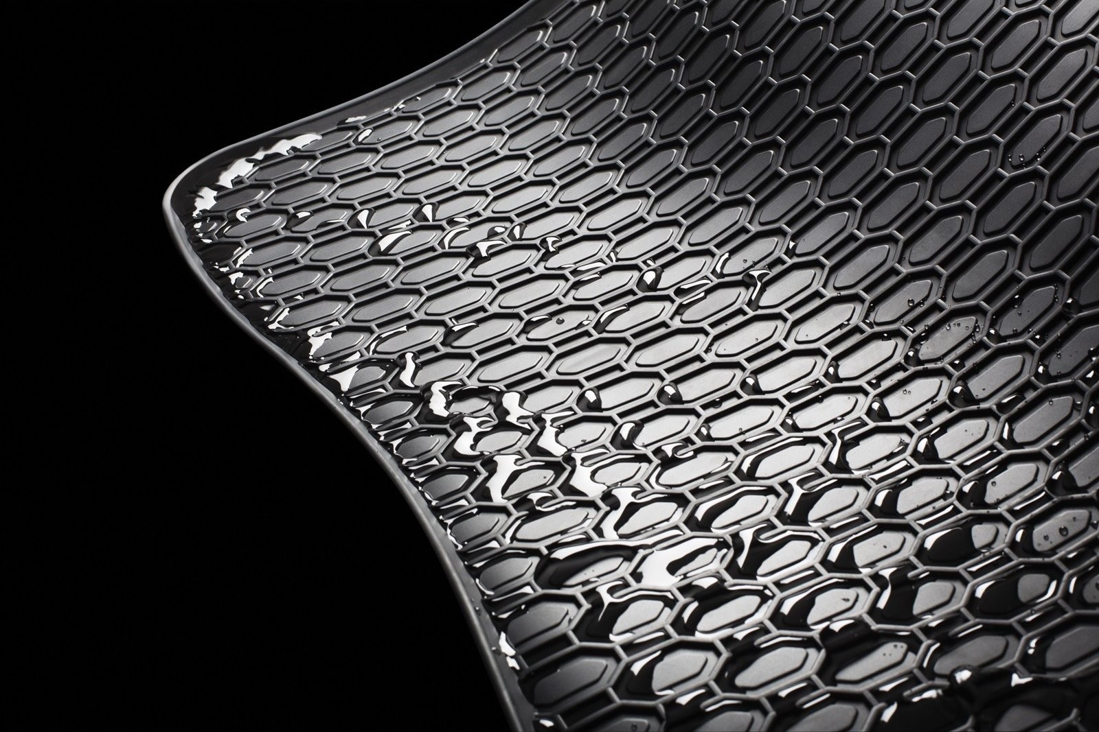 - wysokim i sztywnym rantem na brzegach ograniczającym możliwość wydostania się zabrudzeń poza powierzchnię dywanika i ułatwiającym jego wyjęcie z pojazdu