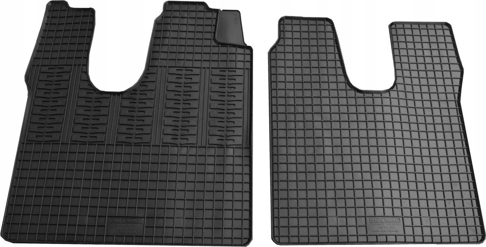 Każdy komplet dywaników gumowych zazwyczaj składa się z 4 sztuk (dwa do przodu i dwa do tyłu samochodu). Dostępne są także dwuelementowe dywaniki dla samochodów dostawczych lub trzyelementowe łączone na zakładki w jedną całość. Dywaniki gumowe CikCar występują w kolorze czarnym.