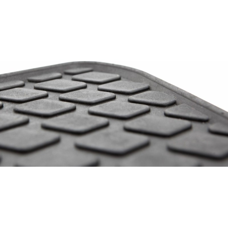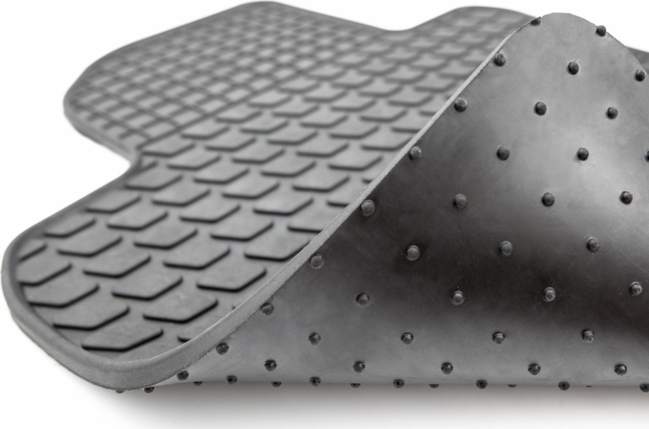 - Dolna część wkładki jest pokryta gumowymi wypustkami, które zapobiegają jej przesuwaniu się po podłodze pojazdu, poprawiając tym samym komfort i bezpieczeństwo podczas użytkowania. Wkładki zachowują elastyczność w szerokim zakresie temperatur.