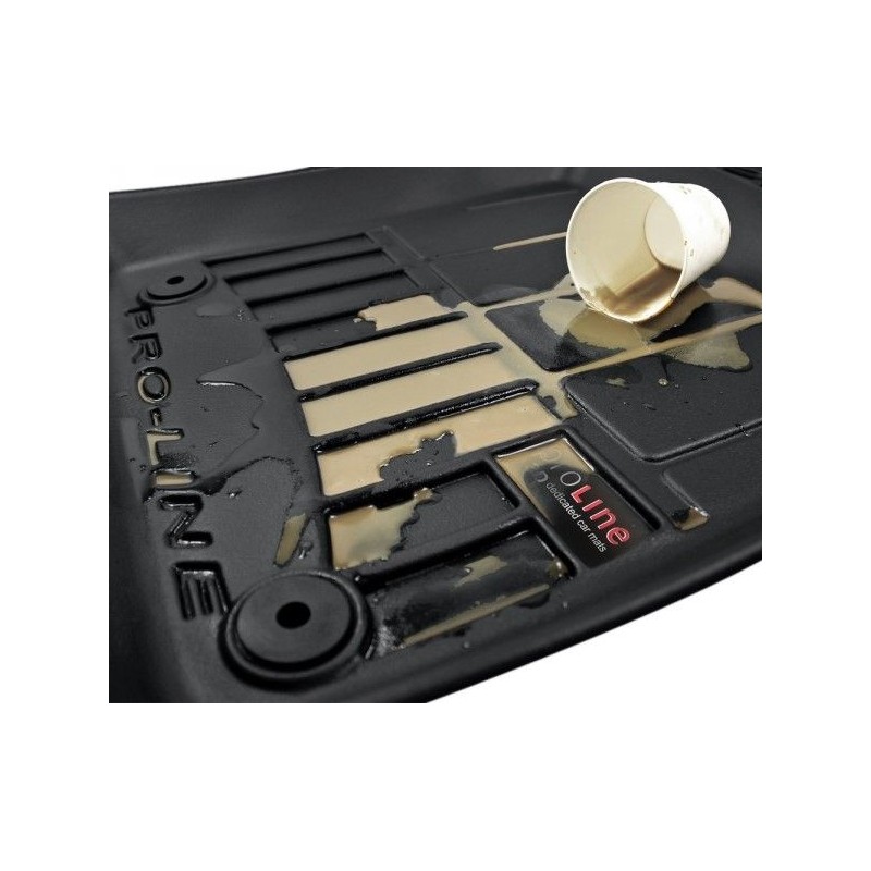 Wykonane z elastomeru plastycznego (TPE) w kolorze czarnym. Dzięki zastosowaniu najwyższej jakości materiałów charakteryzują się fantastyczną odpornością na ścieranie. Maksymalnie wysoki, trójwymiarowy brzeg ochronny zabezpiecza podłogę samochodu, powierzchnię boczną tapicerki oraz podstopnicę łącznie z wykładziną pod pedałami.