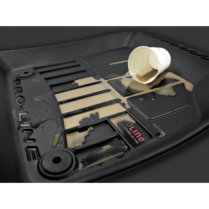 Dywaniki ProLine wyróżniają się nowoczesnym designem, który doskonale współgra z wnętrzem różnych typów pojazdów. Wysokie krawędzie boczne, sięgające do 7 cm, skutecznie zatrzymują zabrudzenia wewnątrz dywanika, co ułatwia utrzymanie czystości w samochodzie.