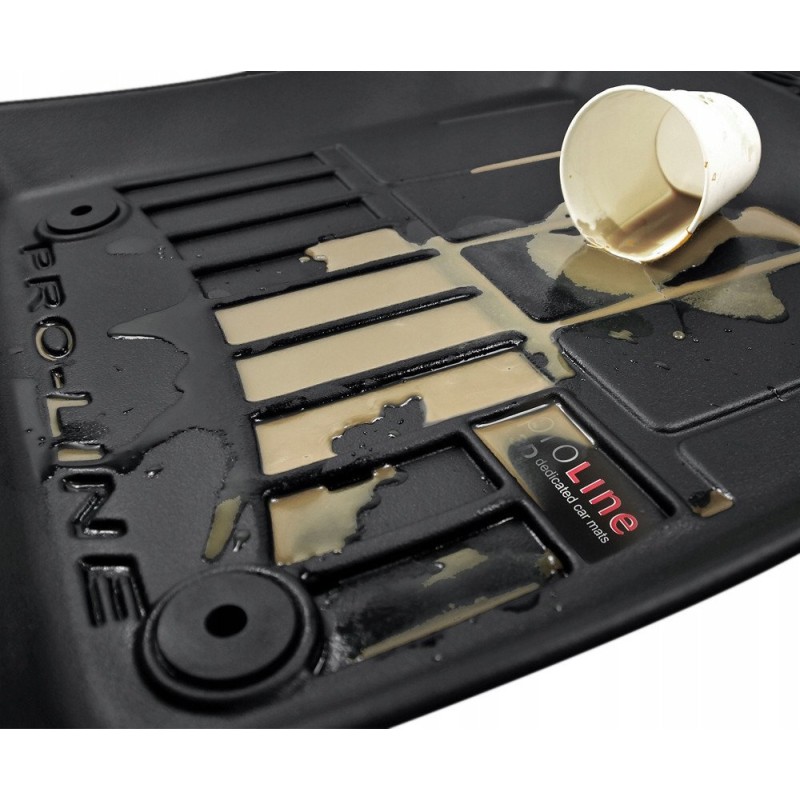Nowoczesny design dywaników ProLine sprawia, że doskonale komponują się z wnętrzem każdego pojazdu. Wysokie krawędzie boczne (do 7 cm) skutecznie zapobiegają wydostawaniu się zanieczyszczeń na podłogę samochodu, co dodatkowo podnosi komfort użytkowania.