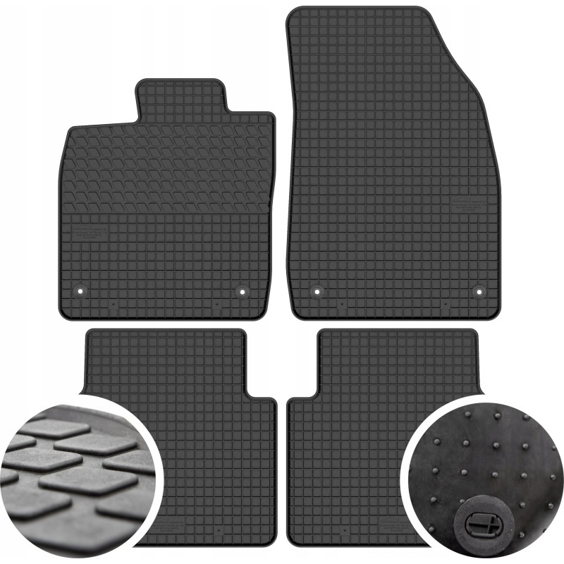 SpecyfikacjaDywaniki są dostępne w komplecie czterech sztuk, co zapewnia pełne pokrycie zarówno przedniej, jak i tylnej części pojazdu.