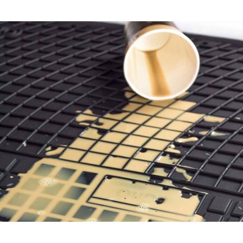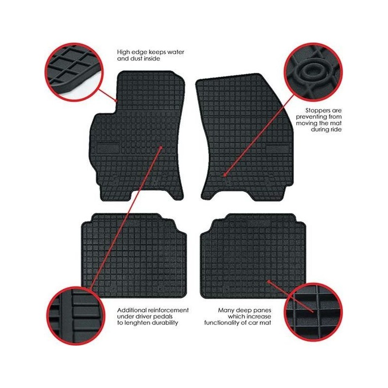 Dywaniki FROGUM charakteryzujące się prostym, minimalistycznym wzorem zaprojektowane są tak, aby idealnie pasowały do podłogi samochodu. Materiał, z którego zostały wyprodukowane to solidnej jakości, wytrzymałe tworzywo pozwalające zachować estetyczny wygląd kabiny przy jednoczesnym skutecznym zabezpieczeniu wykładziny podłogowej przed zabrudzeniami.