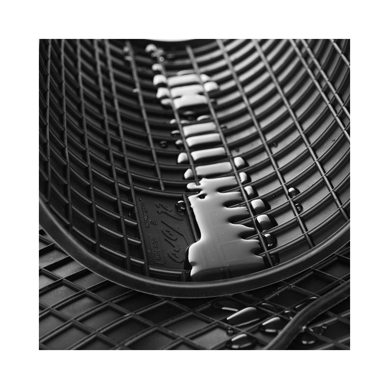 Dywaniki FROGUM charakteryzujące się prostym, minimalistycznym wzorem zaprojektowane są tak, aby idealnie pasowały do podłogi samochodu. Materiał, z którego zostały wyprodukowane to solidnej jakości, wytrzymałe tworzywo pozwalające zachować estetyczny wygląd kabiny przy jednoczesnym skutecznym zabezpieczeniu wykładziny podłogowej przed zabrudzeniami.
