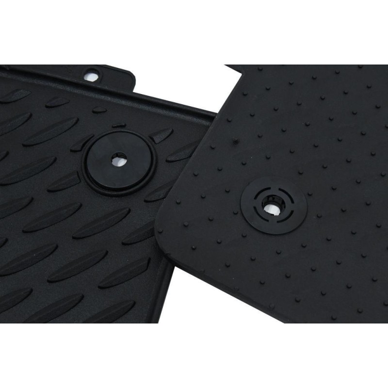 Komplet dywanów o dokładnych wymiarach. Ponadto dywany są łatwe w utrzymaniu czystości i nadają się na każdą pogodę. W zestawie zawsze znajdują się 4 sztuki dywanów precyzyjnie ukształtowanych pod konkretny pojazd. Dywany są wyposażone w otwory mocujące do mocowania.