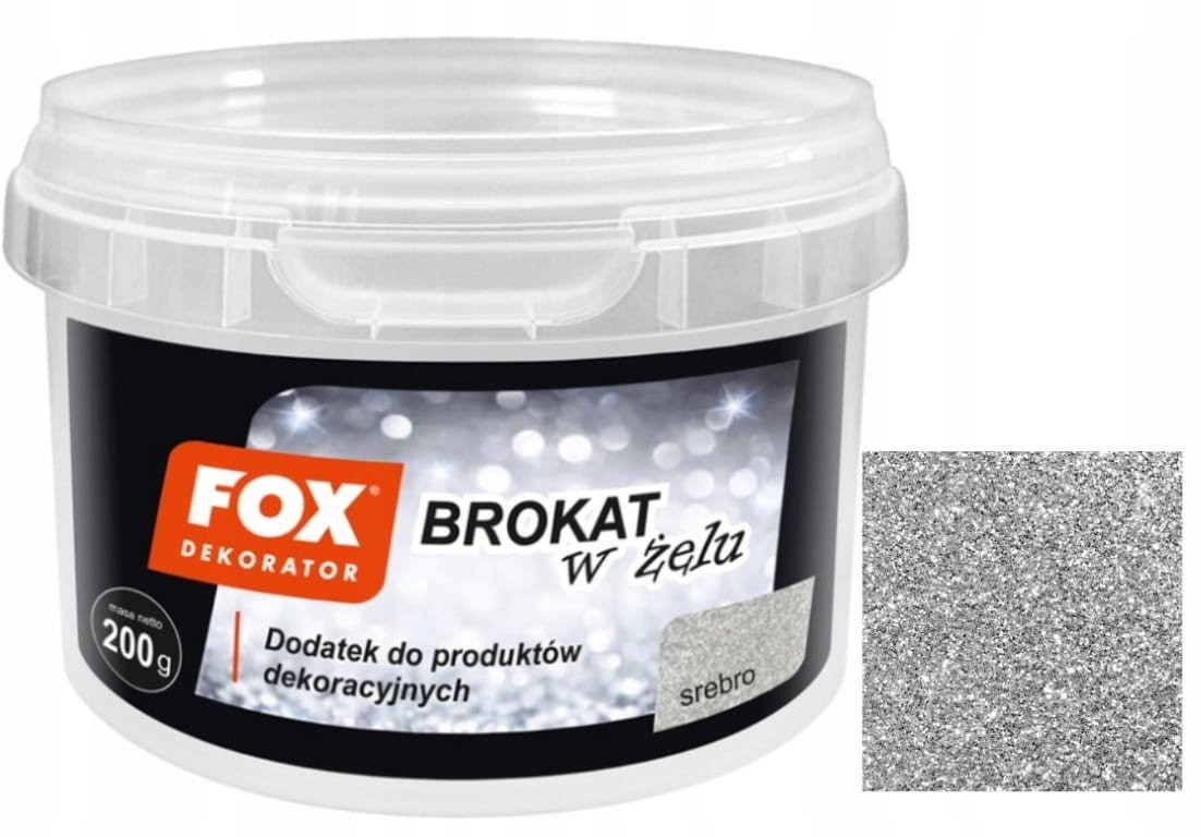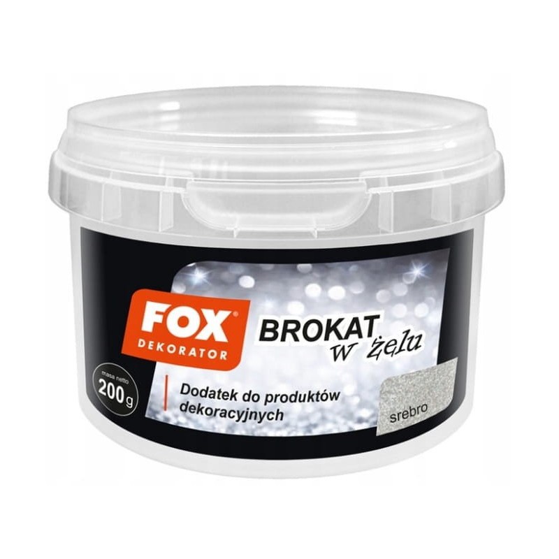 Brokat w Żelu to innowacyjny dodatek, który przekształca zwykłe powierzchnie, nadając im niezwykły blask i efekt wizualny. Jako domieszka do produktów dekoracyjnych, takich jak Lakier Dekoracyjny, Farba Kalahari Matt, czy Trawertyn Wapienny, brokat w żelu wzbogaca wnętrza o spektakularne akcenty, czyniąc je bardziej atrakcyjnymi i unikalnymi. Dzięki doskonałemu dopasowaniu do asortymentu marki Fox Dekorator, brokat zachowuje właściwości i metodę aplikacji produktów bazowych, a jego wszechstronność sprawia, że jest idealny zarówno do odświeżania przestrzeni domowych, jak i do projektów DIY, w tym dekoracji świątecznych.