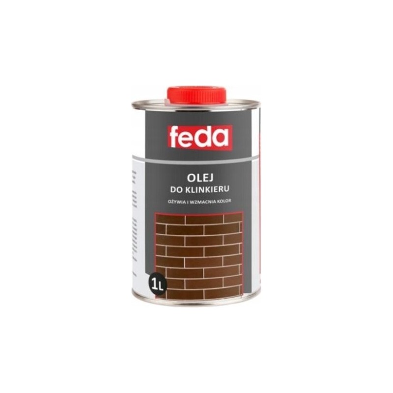Olej przeznaczony do klinkieru FEDA to specjalistyczny preparat służący do ochrony klinkieru, cegieł, płytek elewacyjnych, okładzin z kamienia naturalnego oraz piaskowca. Jest odpowiedni zarówno do stosowania przed, jak i po fugowaniu. Tworzy trwałą powłokę ochronną, chroniącą przed wilgocią, hamującą rozwój glonów i mchów. Dodatkowo przeciwdziała powstawaniu osadów solnych, a także podkreśla kolor i strukturę materiału.