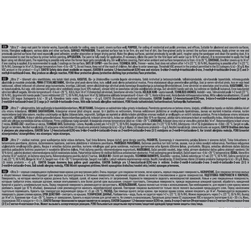 Specyfikacja techniczna farby dyspersyjnej Ultra Mat (10 L)