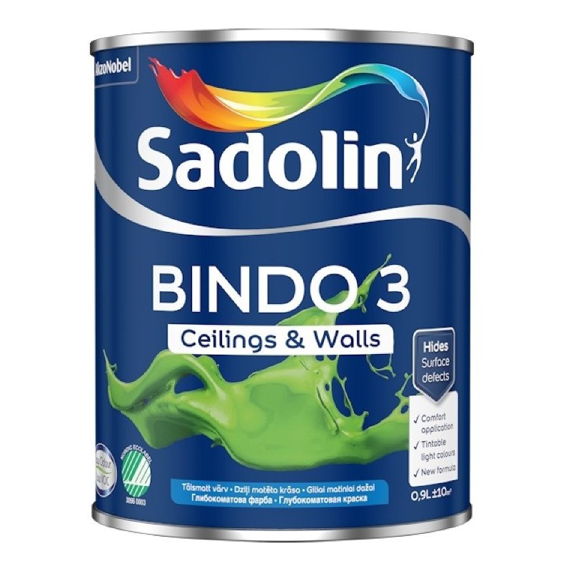 Sadolin BINDO 3 BW 9L – Głęboko matowa farba do ścian i sufitów
