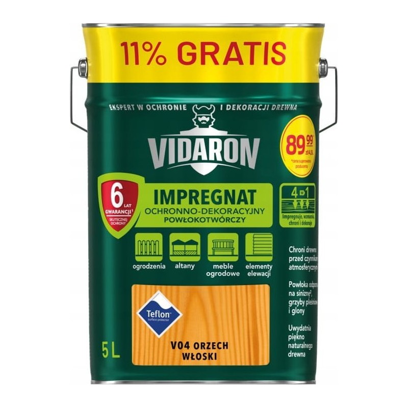 VIDARON Vidaron impregnat powłokotwórczy ochronno-dekoracyjny 5L orzech włoski