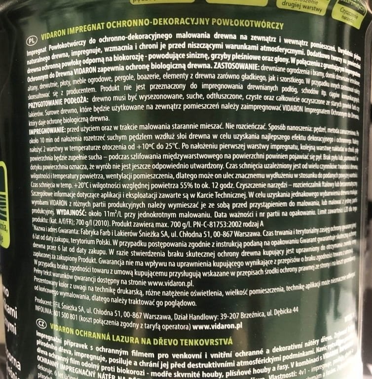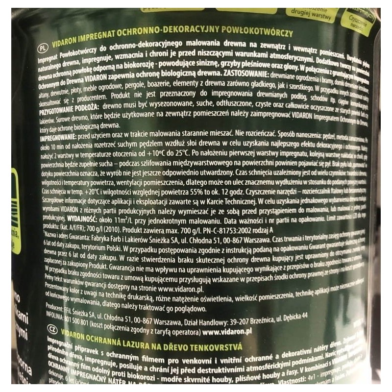 ✅ Kompleksowa ochrona: W połączeniu z bezbarwnym Impregnatem Ochronnym VIDARON, zapewnia pełną ochronę drewna.