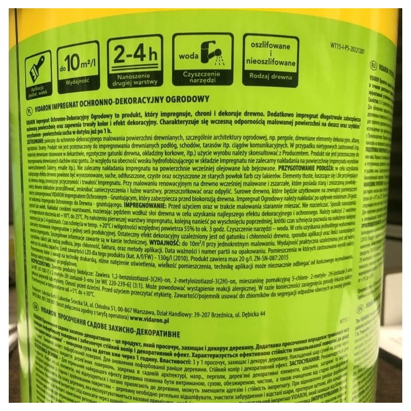 VIDARON Vidaron impregnat ogrodowy 5L antracytowy szary ochronno-dekoracyjny